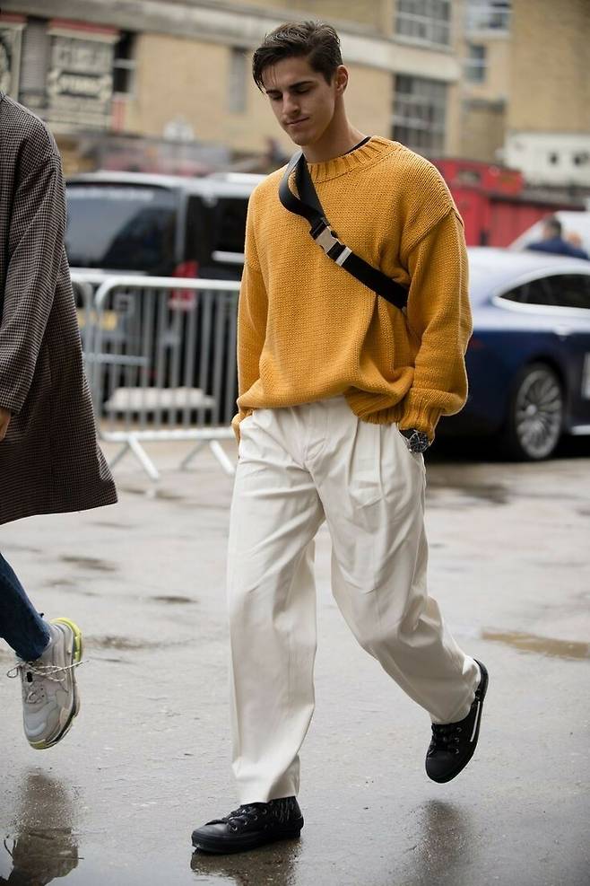가방과 스니커즈는 포멀한 옷과도 잘어울리는 아이템으로