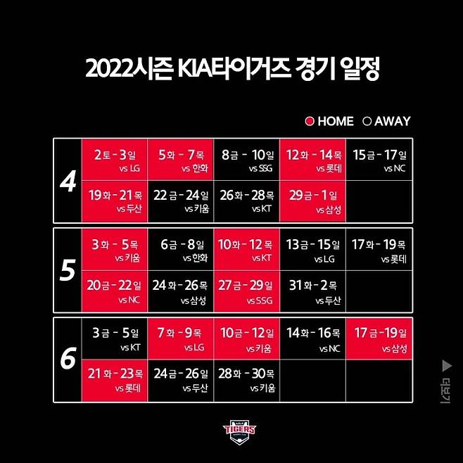 *참고. 2022시즌 KIA 타이거즈 경기 일정