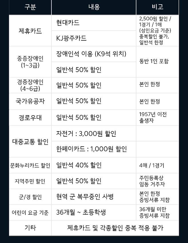 - 예매 가능 시간: 경기 시작 후 1시간 30분 후까지