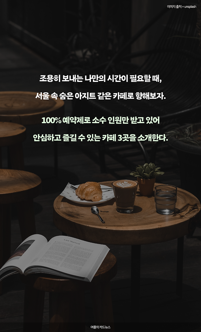 조용히 보내는 나만의 시간이 필요할 때, 서울 속 숨은 아지트 같은 카페로 향해보자. 100% 예약제로 소수 인원만 받고 있어 안심하고 즐길 수 있는 카페 3곳을 소개한다.