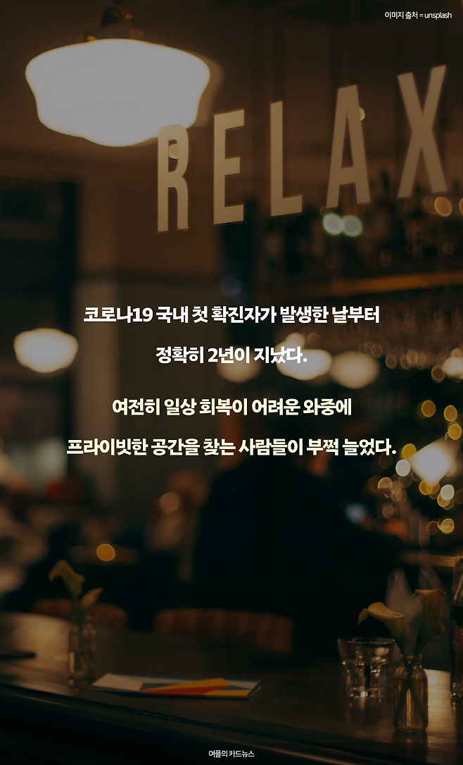 코로나19 국내 첫 확진자가 발생한 날부터 정확히 2년이 지났다. 여전히 일상 회복이 어려운 와중에 프라이빗한 공간을 찾는 사람들이 부쩍 늘었다.