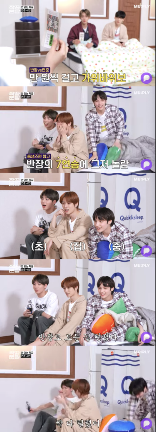 이들은 총 네 질문을 통과해 '우정지원금' 네 장을 획득했다. 연준은 우정지원금 만 원을 걸고 반장과 가위바위보를 했지만 패해 지원금을 잃게 됐다. 이어 수빈이 반장에게 묵찌빠를 제안했다. 수빈은 반장을 상대로 심리전에 성공, 승리를 거뒀다. 이를 지켜본 연준은 만 원을 더 걸고 반장에게 묵찌빠를 제안했다. 두 번째 대결에서는 연준이 승리했다.