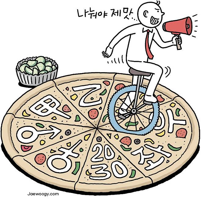 이번 20대 대통령 선거에서도 디바이드앤드룰을 활용한 갈라치기 수법이 쓰였다. 이준석 국민의힘 대표가 기획자였다. 일자리 등에서 힘들어하는 2030세대의 남녀를 갈라놓는 공약과 발언을 쏟아냈다. 윤석열 대통령 당선자는 처음엔 페미니스트 정치인 신지예를 영입하며 중도 확장을 꾀하려 했다. 하지만 20대 남성 지지율이 떨어지자, 페이스북에 ‘여성가족부 폐지’라는 달랑 일곱 글자를 올려놓으며 갈라치기 전략에 편승했다. 대선 기간, 정책은 사라지고 배제·혐오·차별이 논쟁거리가 됐다. 윤 후보가 당선됐지만, 디바이드앤드룰을 변형한 젠더 갈라치기는 우리 사회에 깊은 상처를 냈다.