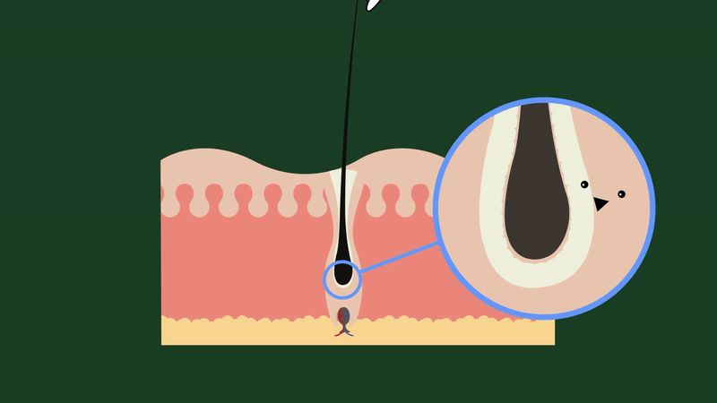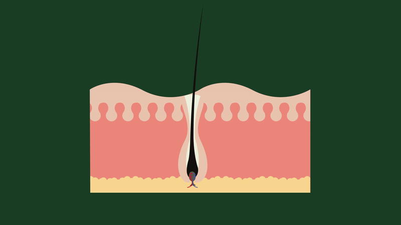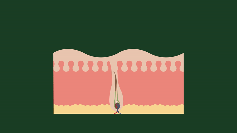 먼저 모발은 모낭(Follicles)에서 시작합니다. 모낭은 모발을 만드는 피부 기관으로 표피(피부의 상피 조직)가 피하조직으로 움푹 들어가면서 만들어집니다.