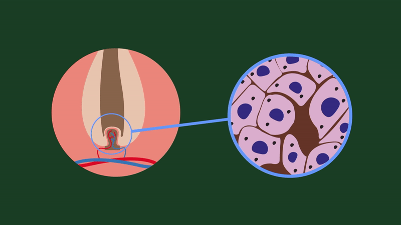 그리고 휴지기에서는 모발이 빠지고, 다시 아래에서는 모구부(Hair bulb)가 모유두(Hair papilla)와 결합하면서 새로운 모발을 생성합니다.