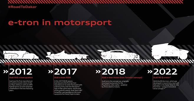 자동차 제조사가 천문학적인 비용을 들여 모터스포츠에 참가하는 이유는 크게 두 가지다. 하나는 명성이고, 또 하나는 가혹한 환경에서 얻은 데이터를 토대로 더 나은 자동차를 만들기 위함이다. 아우디가 우승 상금도 없는 다카르 랠리에 출전한 가장 큰 이유 역시 전동화 시대를 맞아 남들보다 더 나은 전기차를 개발하기 위해서다.