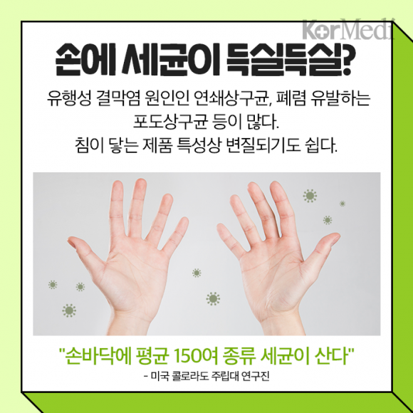 이 경우 손에 세균이 득실득실하다는 점을 유념해야 한다. 손에 유행성 결막염 원인인 연쇄상구균, 폐렴 유발하는 포도상구균 등이 많다. 침이 닿는 제품 특성상 변질되기도 쉽다.