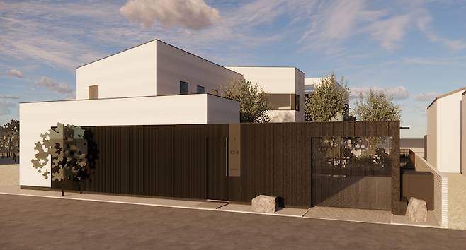 집 전체 3D 렌더링 입니다. 99% 일치하는군요. 저 하늘의 구름은 실사같아요.