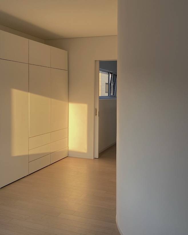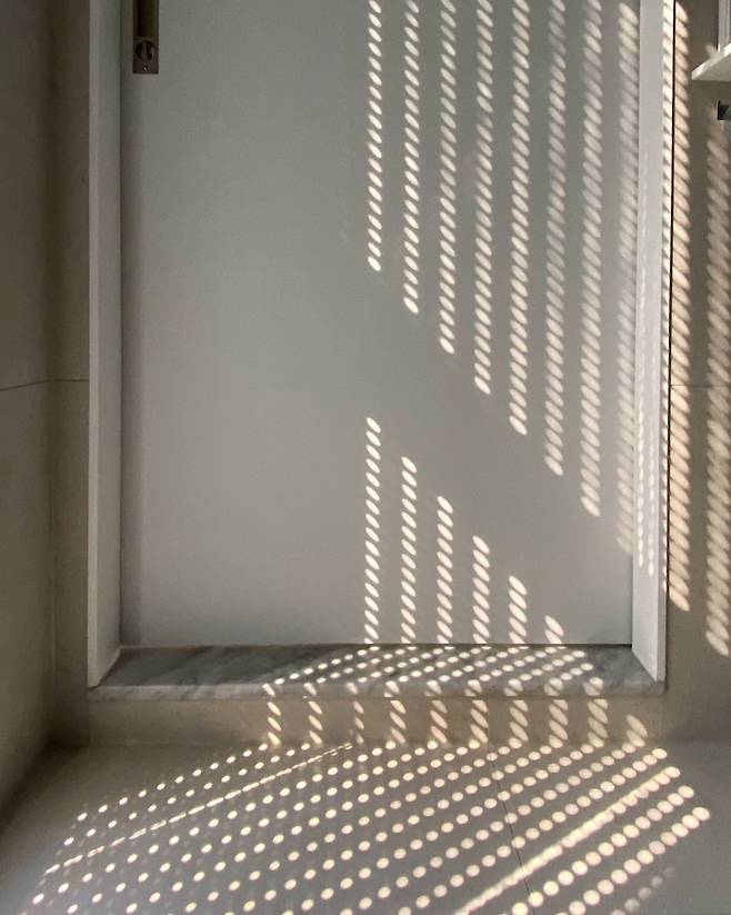 파우더룸에서 게스트룸을 닫은 모습이에요. 서쪽에 창이 있어서 오후가 되면 그림자가 너무 멋져요. 시간마다 그림자의 모습이 변해서 그걸 보는 재미도 있답니다.