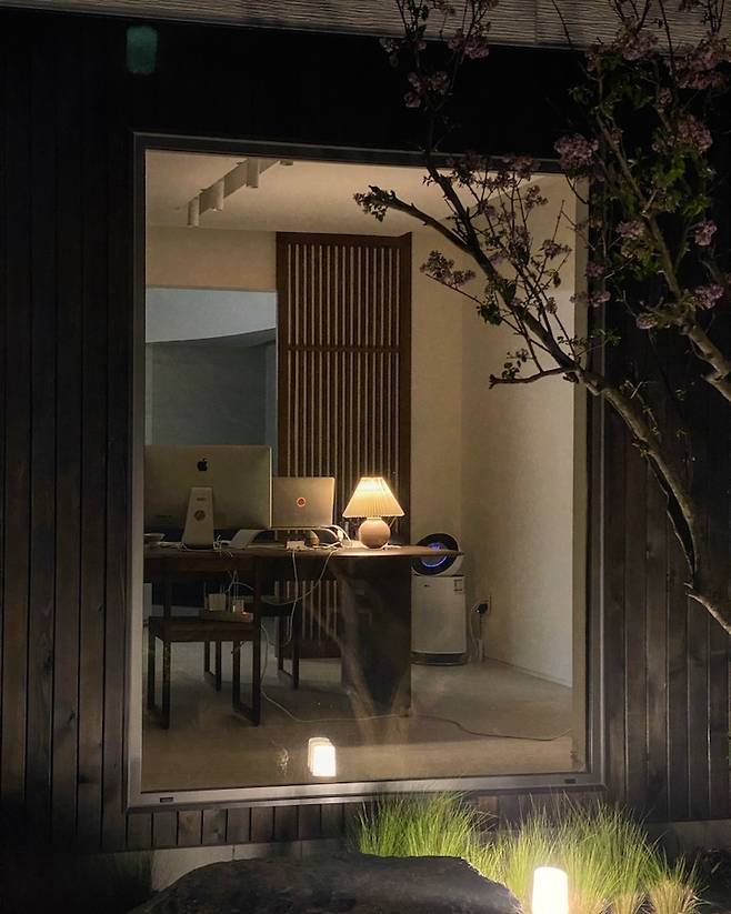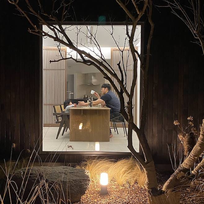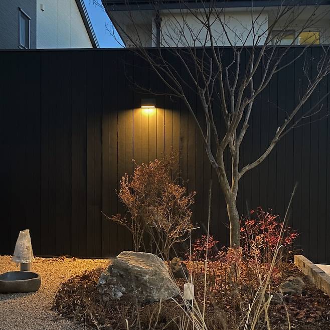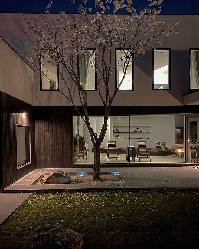 얼마 전 벚꽃이 핀 봄, 저녁에 찍은 집의 모습은 정말 고슴도치 엄마 같지만 너무 예쁨 아니 아름답습니다. 외벽등도 센스있게 잘 배치해 주셨어요. 이런 고즈넉하고 정갈한 느낌 사랑합니다.