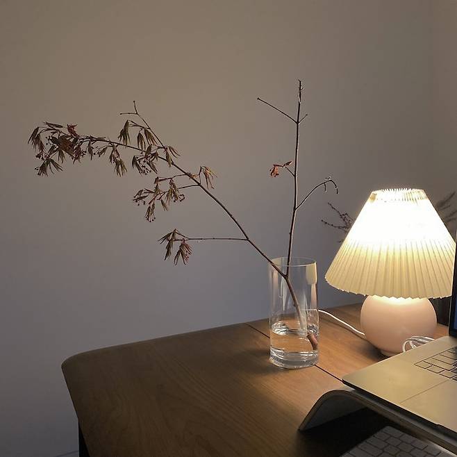 단풍나무 가지치기를 잘못해서 무심하게 꽃병에 꽂았는데 생각보다 멋있어서 스스로 칭찬했습니다.