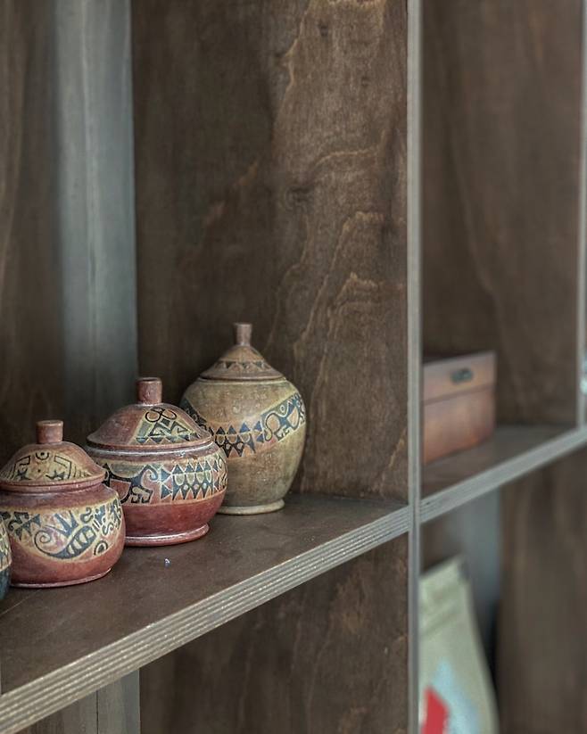 보시다시피 저희 집은 흰색, 짙은 색의 원목, 블랙 그리고 석재가 전체적인 톤앤매너입니다. 제가 요즘 푹 빠진 조합인데 고재느낌의 가구들을 상당히 좋아합니다. 개인적으로 밝은 원목느낌보다는 어둡게 톤다운된 브라운을 좋아합니다. 츄크는 대청마루에서 장난감도 가지고 놀고 노래도 부르고 춤도추고 합니다. 너무 좋아요. 특히 겨울에는 차가운 타일을 피할 수 있어 좋습니다. 벽면 전체에 수납장을 만들어서 츄크의 장난감이나 옷을 수납하였어요. 저곳에 숨기면 집이 깨끗해보입니다.