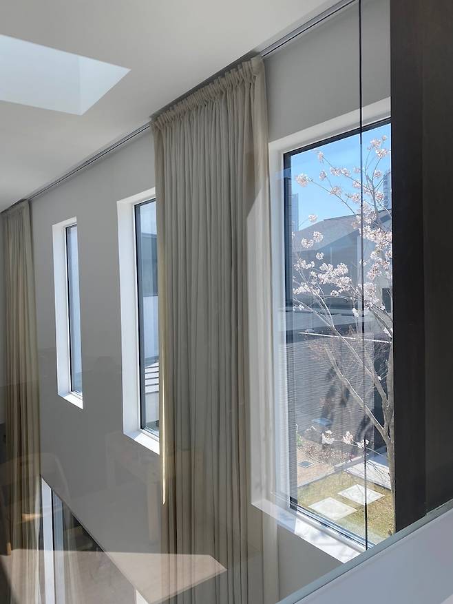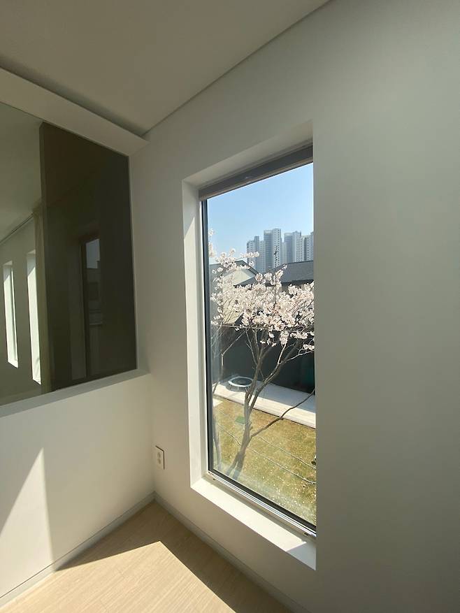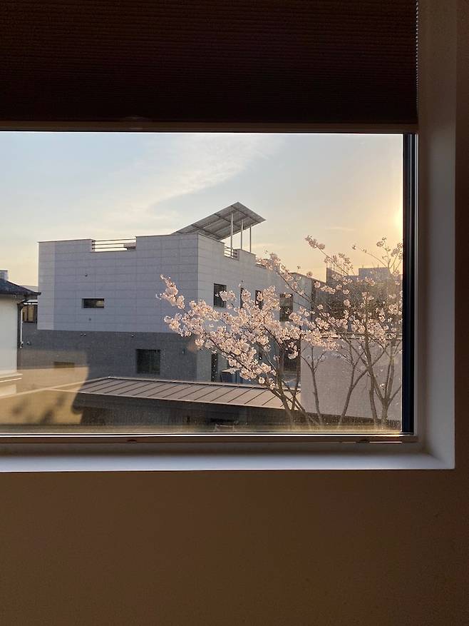 남쪽 창은 자연이 주는 벚꽃 액자가 됩니다.