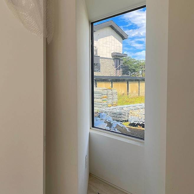 침대에 누워서 보이는 창의 구조 입니다. 공사 중일 때 찍었는데도 느낌있어요. 가을 하늘은 역시 파랗군요.