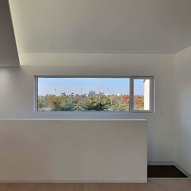 이층에 올라오자마자 보이는 갤러리창입니다. 지금은 거대한 집이 들어서서 저 뷰가 없어요. 뒷집 벽뷰가 되어 버렸지만 그걸 대비해서 사진을 찍어 두었습니다. 저 창으로 보이는 곳은 저희 집에서 북쪽입니다.