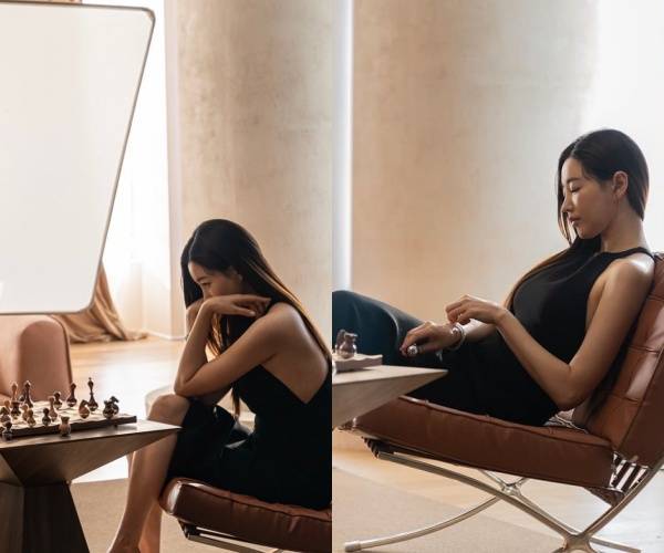 사진 속에서 김사랑은 광고 촬영을 하고 있는 듯한 모습. 홀터넥 블랙 드레스를 입고 있는 김사랑은 등을 과감하게 노출했는데 매끈하고 날씬한 몸매를 자랑해 눈길을 끈다.