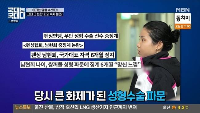 전 펜싱 선수 남현희가 과거 쌍꺼풀 수술 후 자격정지됐던 일화를 회상했다.