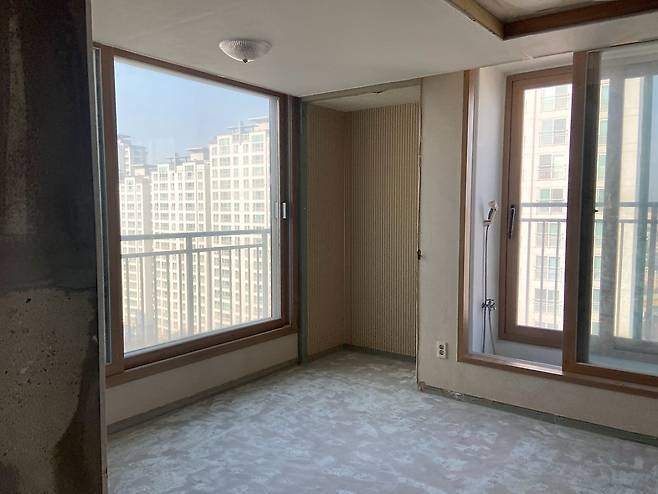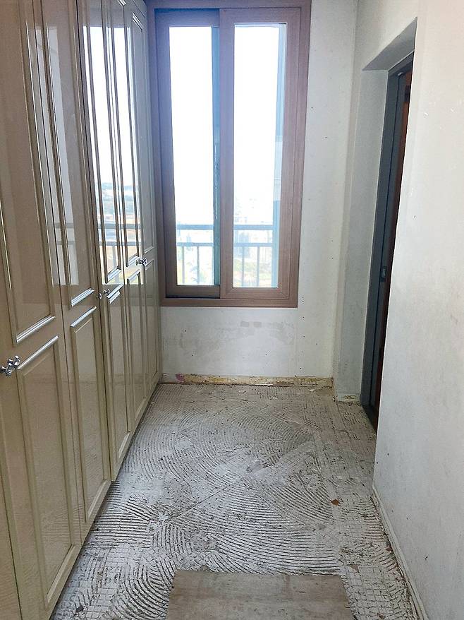 안방은 창이 총 세개인데요. 그중 안방 문을 마주 보고 있는 베란다의 큰 창이 포인트였어요. 저는 큰 창과 넓은 발코니 공간을 이용해서 독특한 인테리어를 시도해 보고 싶더라고요. 이 공간을 보자마자 한 가지 생각이 스쳐 지나갔어요. 바로 '평상'이요!