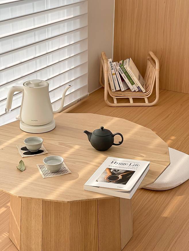 테이블은 정말 며칠 밤낮으로 온·오프라인 가리지 않고 찾아다녔는데, 집에서 그리 멀지 않은 곳에 있는 가구 편집샵에서 만날 수 있었어요. 원목 색이 잘 어우러질까 걱정을 했는데 생각보다 너무 잘 어우러져서 놀랐어요. 침대에서 일어나면 평상이 정면으로 보이는데 그때마다 너무 예뻐 감탄을 하며 멍 때리곤 해요. 가끔은 내가 이곳에 살고 있는 게 정말 맞나 하고 벅차오르기도 해요.
