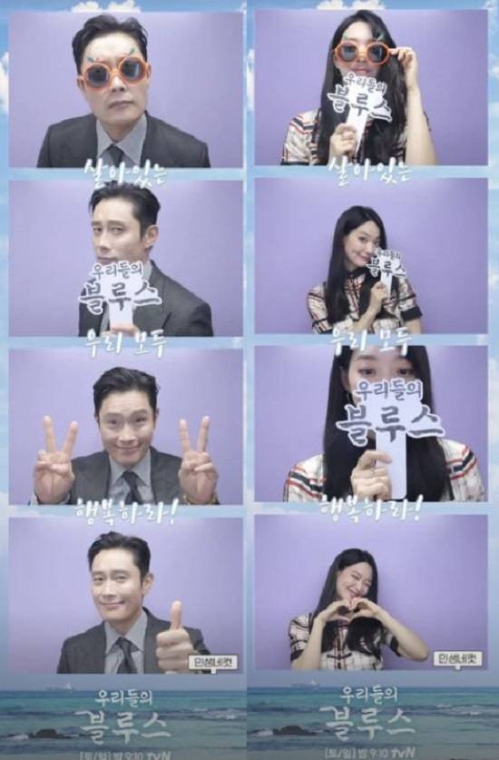 차승원은 시크한 표정으로 훈훈함을 자아내고 있으며, 이정은은 '살아있는 우리 모두 행복하라'라는 문구가 적혀있는 종이를 들며 포즈를 취하고 있다. 이어진 사진에서 한지민은 손하트를 다양하게 시도하며 '우리들의 블루스' 문구가 적힌 종이를 들고 있다. 특히 손하트를 하는 귀여운 포즈와 빛나는 외모는 눈길을 끈다.