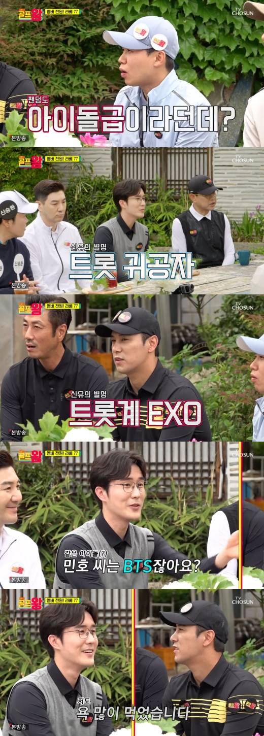 신유는 이어 “여기는 또 BTS다”라며 장민호를 가리켰다. 그러자 장민호 역시 “나도 욕 많이 먹었다”고 대답했고, 신유는 “내가 그 기분 안다”며 공감하는 모습을 보여 모두를 폭소하게 만들었다.