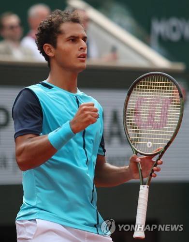 epa09966030 Juan Pablo Varillas of Peru reacts as he plays Felix Auger-Aliassime of Canada in their men?s first round match during the French Open tennis tournament at Roland ?Garros in Paris, France, 22 May 2022. EPA/MARTIN DIVISEK