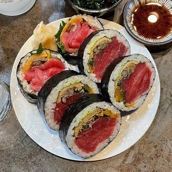▲가격: 보말 비빔국수 16,000원, 마구로 후토마끼 15,000원