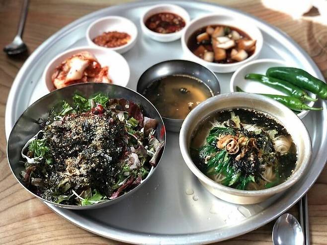 [식신TIP] 제주에서만 먹을 수 있는 특별한 비빔국수를 찾고 있다면 이곳이에요. 보말 비빔국수가 이곳의 시그니처 메뉴이기 때문이죠. 메밀과 감태로 데코레이션 한 바다 내음 가득 담긴 보말 비빔국수를 와인과 함께 즐겨보세요.