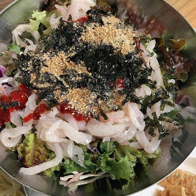 [식신TIP] 양은 냄비에 담겨 나오는 소박한 시골 감성의 국수 맛집이에요. 비빔국수 위로 회가 가득 올라간 회국수가 이 집만의 별미! 파전, 빈대떡, 부추전도 있으니 곁들여 먹으면 한국인의 소울 충전 완료~