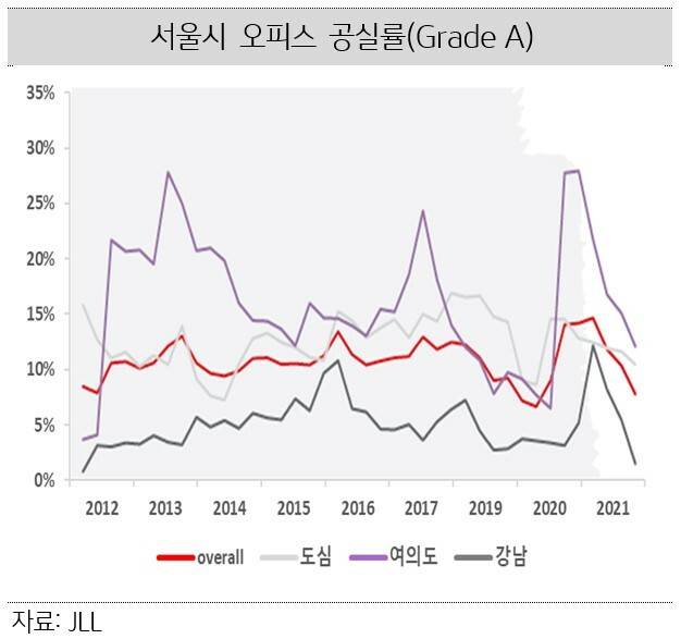1. 강남ㆍ여의도 공실률 큰 폭 하락, 도심 임대료 상승세 (서울 Grade A 오피스)
