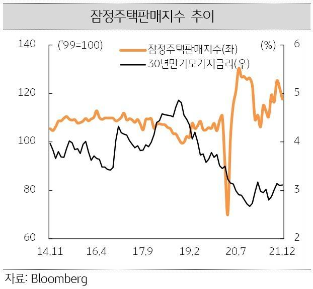 저금리, 주식시장 호황, 재택근무 등으로 주택수요 급증하면서 2021년 기존주택 판매건수는 612만채로 2006년 이후 최고치로 집계됐습니다. 11월 S&P 주택가격지수는 282.4로 전월 대비 1.0% 상승했습니다.