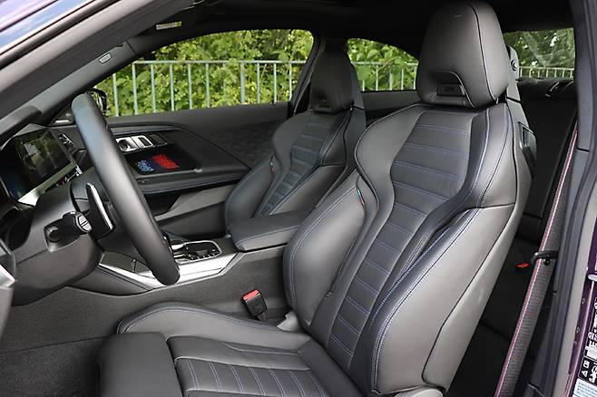 시트는 4인승. 허벅지까지 전동으로 조절할 수 있는 M스포츠 시트가 표준이다. 앉았을 때의 감촉은 상대적으로 탄탄하다. 그래도 딱딱하다는 느낌이 없다. 1열 시트백을 젖히고 탑승할 수 있는 리어 시트는 보조석 개념이다. 43 : 20 : 40 분할 접이식으로 적재 공간으로 활용할 수 있다. 트렁크의 전동 오픈 기능은 시승차에는 생략됐다. 반도체 수급 문제로 인한 조정으로 보인다.