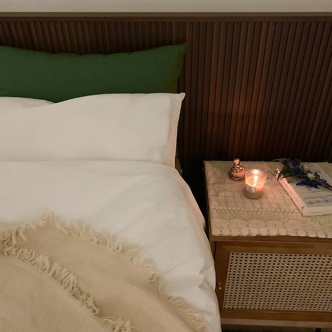 침구도 호텔 침구처럼 심플하면서 폭신한 스타일을 좋아해요. 얼마 전에 새로 산 사계절 구스 이불은 한여름을 제외하면 포근하게 덮을 수 있더라구요. 얇지만 구스이불이라 안에 들어가면 금세 따뜻해지고 적당히 무게감이 있어 숙면에 좋네요.