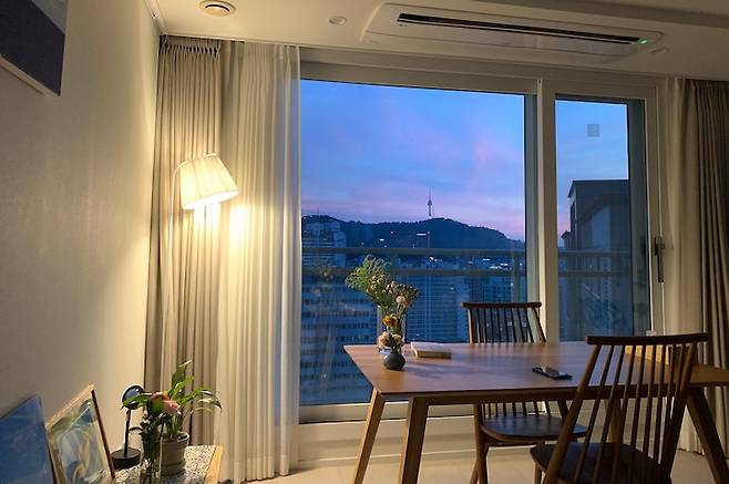 이 집을 고르게 된 이유는 탁 트인 남산타워가 보이는 뷰 때문입니다. 아파트들을 구경하다 보니 생각보다 앞뒤가 트인 집이 없더라구요. 매일 보는 창밖 풍경이 삶의 질에 중요하다고 생각해서 결정했고, 이사 후 6개월이 넘는 지금까지도 항상 풍경을 보며 감탄하고 있습니다. 매일 다른 색의 석양을 보고, 계절에 따라 해의 높이가 달라지는 걸 느낄 수 있다는 만족감이 생각보다 큰 것 같아요.