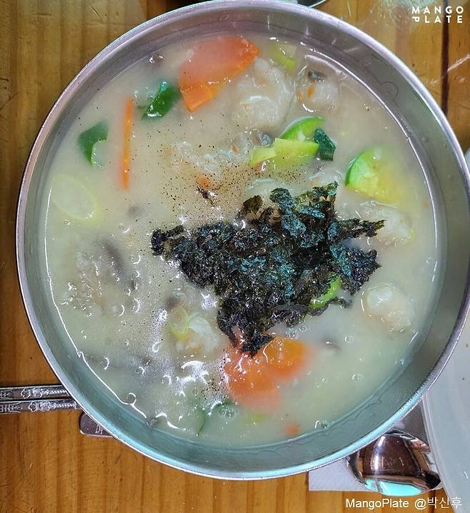 옹심이 식감은 쫄깃하고 국물은 걸쭉하면서도 고소한 맛이 일품입니다.