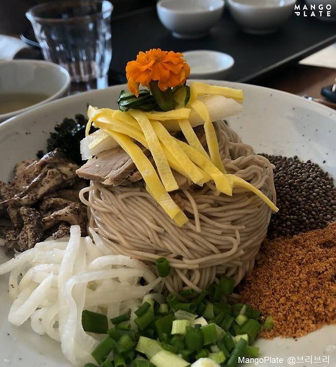 이곳의 시그니처 메뉴 ‘허밍냉면’은 비빔냉면이지만, 고춧가루 양념이 아닌 간장소스에 비벼 먹는 냉면이에요. 특제소스인 ‘허밍소스’와 육수를 적당히 넣고 젓가락으로 슥슥 비벼보세요. 꼬소한 들기름 향을 느끼실 수 있을 거예요.