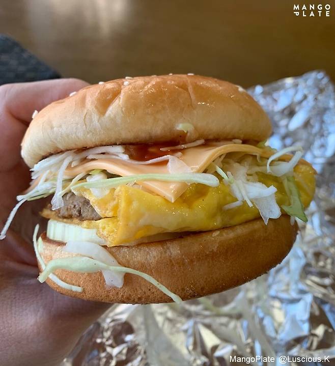 뭐니 뭐니 해도 추천 메뉴는 햄버거입니다. 윤기 좌르르한 빵 사이에 양파, 달걀부침, 패티, 양배추가 케요네즈 소스와 함께 들어가는데요. 어릴 적 동네 빵집에서 먹어봄직한 투박하지만 추억 어린 맛이랍니다!