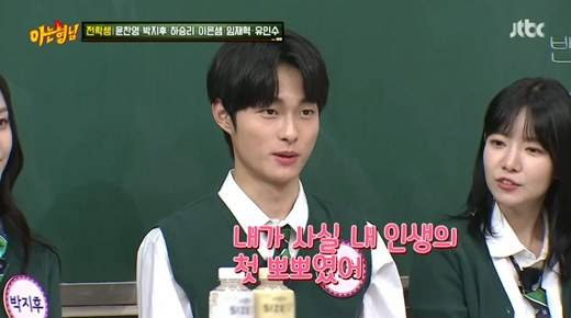 이날 윤찬영은 '지우학' 속 박지후와 뽀뽀신에 대해"내 인생의 첫 뽀뽀였다"라고 밝혔다.