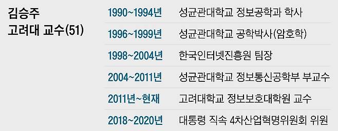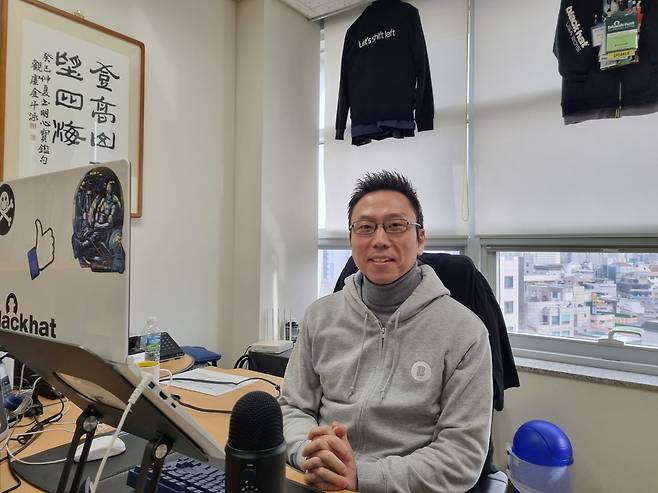이러한 의문을 품고 지난 2월 7일 사이버 보안 분야 권위자인 김승주 고려대 정보보호대학원 교수를 찾았다. 대학원이 위치한 서울 성북구 안암로 145 고려대 미래융합기술관 건물은 한쪽은 원통형, 다른 한쪽은 사각형의 외관이 잘 어우러져 첨단 느낌이 났다. 건물 사방을 덮은 유리벽이 한겨울의 차가운 햇빛을 반사하고 있었다. 오후 3시, 610호 연구실에서 필자는 김 교수와 마주 앉았다. 그는 회색 후드티와 갈색 일상복 바지를 입고 있었다. 사회의 기존 형식에 얽매이지 않는, 새로움과 첨단을 추구하는 IT(정보기술) 전문가 분위기가 물씬 났다.