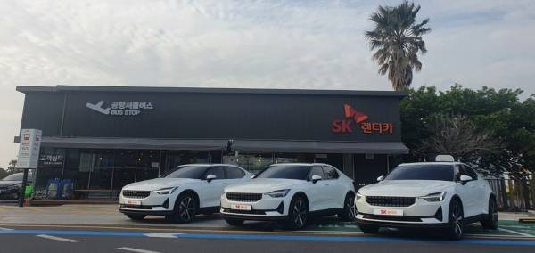 현재 SK렌터카 제주지점에는 현대차 아이오닉5와 코나, 기아 EV6와 니로, 테슬라 모델3 등 인기 전기차종들이 운영 중이며 이번에 추가로 폴스타2 30대가 신규로 도입됐다.