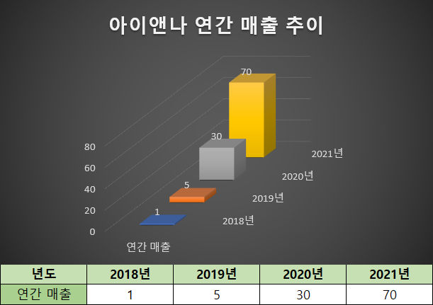 시장성은 충분한 셈입니다. 아이앤나가 이 시장에서 독보적인 위치에 오르는 데엔 3년이 채 걸리지 않았죠. 창업 첫해엔 매출이 거의 없다가 이듬해인 2019년이 돼서야 5억원의 매출을 기록했습니다. 그 뒤 2020년엔 30억원으로 6배가 넘는 외연 성장을 보였죠. 지난해엔 매출이 70억원으로 껑충 뛰었습니다. 지난해엔 매출 외에도 △가입률 △회원수 △월간활성이용자수(MAU) 등 주요 성장지표 모두 전년 대비 약 2배 증가했습니다. 회사는 올해 매출이 100억원을 넘길 수 있다고 자신했죠.