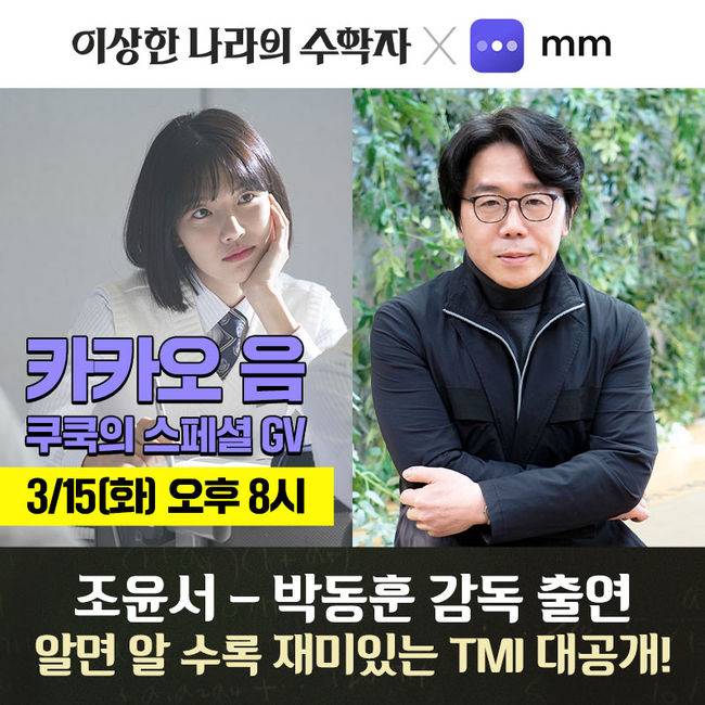 '이상한 나라의 수학자'의 연출을 맡아 극장가에 따뜻한 울림을 전하고 있는 박동훈 감독과 한지우(김동휘 분)의 유일한 친구이자 당찬 성격을 지닌 10대 소녀 보람 역으로 인상적인 활약을 펼친 조윤서는 음(mm)을 통해 관객들과 실시간으로 소통할 예정이다. 두 사람은 캐스팅부터 촬영 비하인드, 배우 최민식과의 호흡을 맞춘 소감 등 다채로운 이야기를 전할 것으로 기대를 모으고 있다.