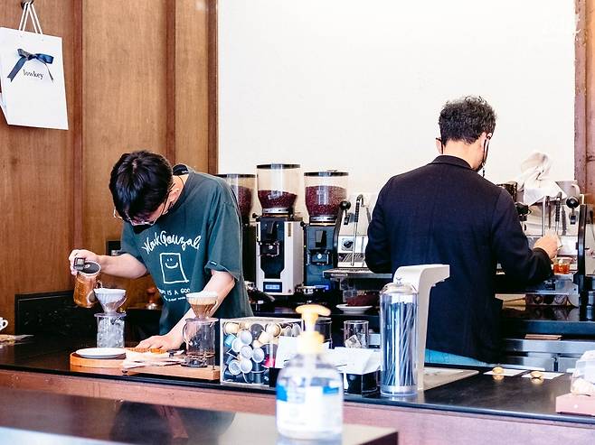 로우키라는 의미처럼 저조도의 공간이지만, 커피와 함께 차분히 집중할 수 있는 느낌이다. 바리스타들이 사랑하는 로우키의 커피뿐만 아니라 섬세하고 영감 있는 매장까지 아름답다.