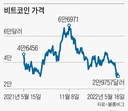 한국인인 권도형 테라폼랩스 대표가 만든 테라는 ‘위성 코인(가상 화폐)’인 루나와 연동해 가격이 개당 1달러로 유지되게 설계된 스테이블코인(stable coin)이다. 한때 시가총액이 세계 10위권 안에 들 정도로 규모가 커졌지만 이달 들어 가격이 폭락해 가상 화폐 전체에 시장 불안을 키우고 있다. 설상가상으로 최근 미국 연방준비제도가 인플레이션 방어를 위해 공격적으로 기준금리를 올리겠다고 예고하자 비트코인을 비롯한 가상 화폐 전반이 큰 폭으로 하락하며 투자자 불안을 키우고 있다. 비트코인 가격은 지난해 고점(약 6만7000달러)의 절반 이하로 하락해 2만9800달러(16일 기준) 선에서 거래되고 있다. 가상 화폐, 괜찮은 걸까.