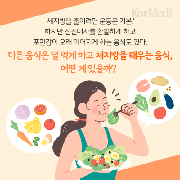 체지방을 줄이려면 운동은 기본! 하지만 신진대사를 활발하게 하고 포만감이 오래 이어지게 하는 음식도 있다.