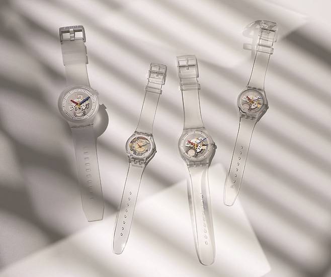 스와치(Swatch)가 투명함을 컨셉으로 내세운 클리어(Clear) 컬렉션을 출시했습니다. 스와치는 창립 초창기인 1985년부터 당시로서는 파격적인 투명 케이스를 강조한 이러한 시계들을 꾸준히 발표했는데요. 올해는 한층 더 투명한 케이스에 스트랩까지 투명하게 제작해 전체적인 통일감을 강조하고 있습니다.