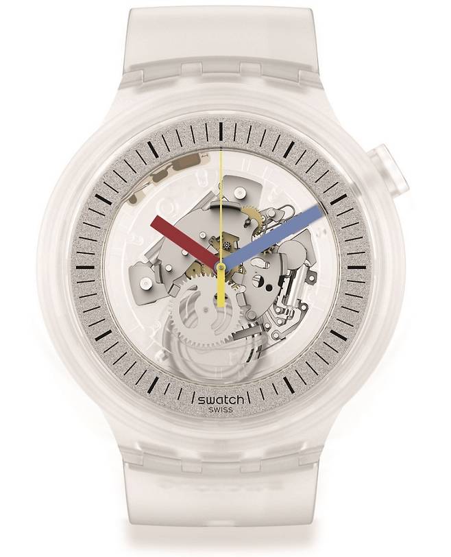 빅 볼드(Big bold), 뉴 젠트(New Gent), 젠트(Gent), 스킨(Skin) 총 4가지 컬렉션으로 선보이며, 공통적으로 천연 바이오소스드(자연추출) 소재의 투명 케이스를 사용해 투명함의 테마와 함께 근래 스와치가 추구하는 친환경 기조를 이어갑니다. 47mm(빅 볼드), 41mm(뉴 젠트), 34mm(젠트 & 스킨) 사이즈가 각각 다르고 컬렉션의 성격이 조금씩 차이가 있는 만큼 무브먼트도 제각각이지만, 투명한 케이스를 통해 심플한 타임온리 쿼츠 칼리버의 면면을 고스란히 감상할 수 있습니다. 실버, 화이트, 블랙, 블루, 레드, 옐로우 등 한정된 컬러를 포인트로 적재적소에 배합한 디자인 코드 역시 4가지 모델에 동일하게 적용되었습니다.