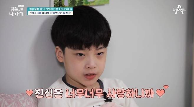 "화가 나면 참기 힘들어. 가끔 화날 때, 왜 화가 나는지 모를 때도 있어. 답답해. (나 때문에) 엄마가 우는 거 많이 봤어. 같이 울고 싶을 때도 있어." (금쪽이)