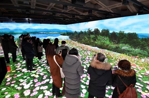 문화체육관광부와 한국콘텐츠진흥원이 14일 '광화시대'의 8종 콘텐츠 중 도심 속 미디어 정원 '광화원'을 서울 경복궁역 메트로미술관 2관에서 개관했다.