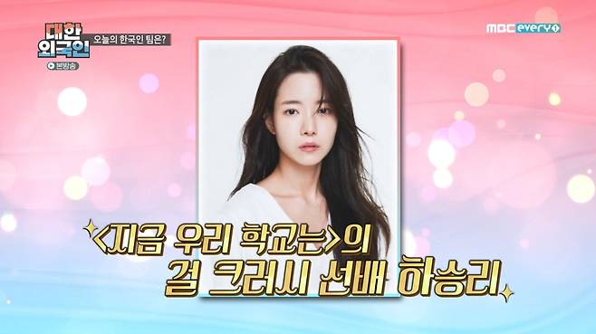 6일 오후 방송된 MBC에브리원 ‘대한외국인’은 ‘세대별 배우들’ 특집으로 배우 윤해영, 심이영, 하승리가 출연했다. 부팀장으로는 개그맨 겸 배우 박규선이 함께했다.